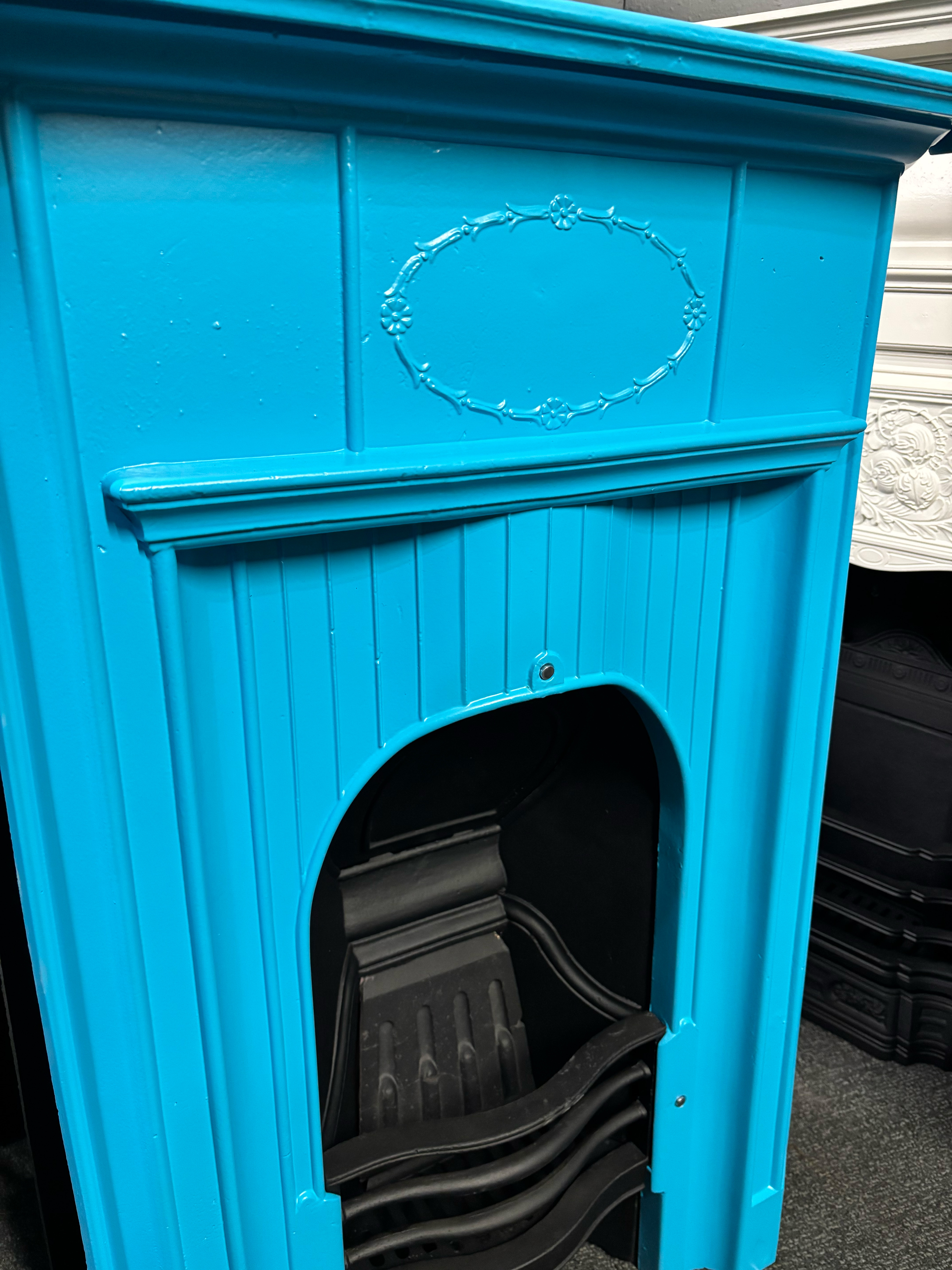 Finished in a bold blue powder-coated finish, this compact early Edwardian fireplace is a great choice for a range of interiors. Made from period cast iron, it’s particularly well suited to bedrooms or smaller living spaces and can be fitted directly against the wall, with no surround required.