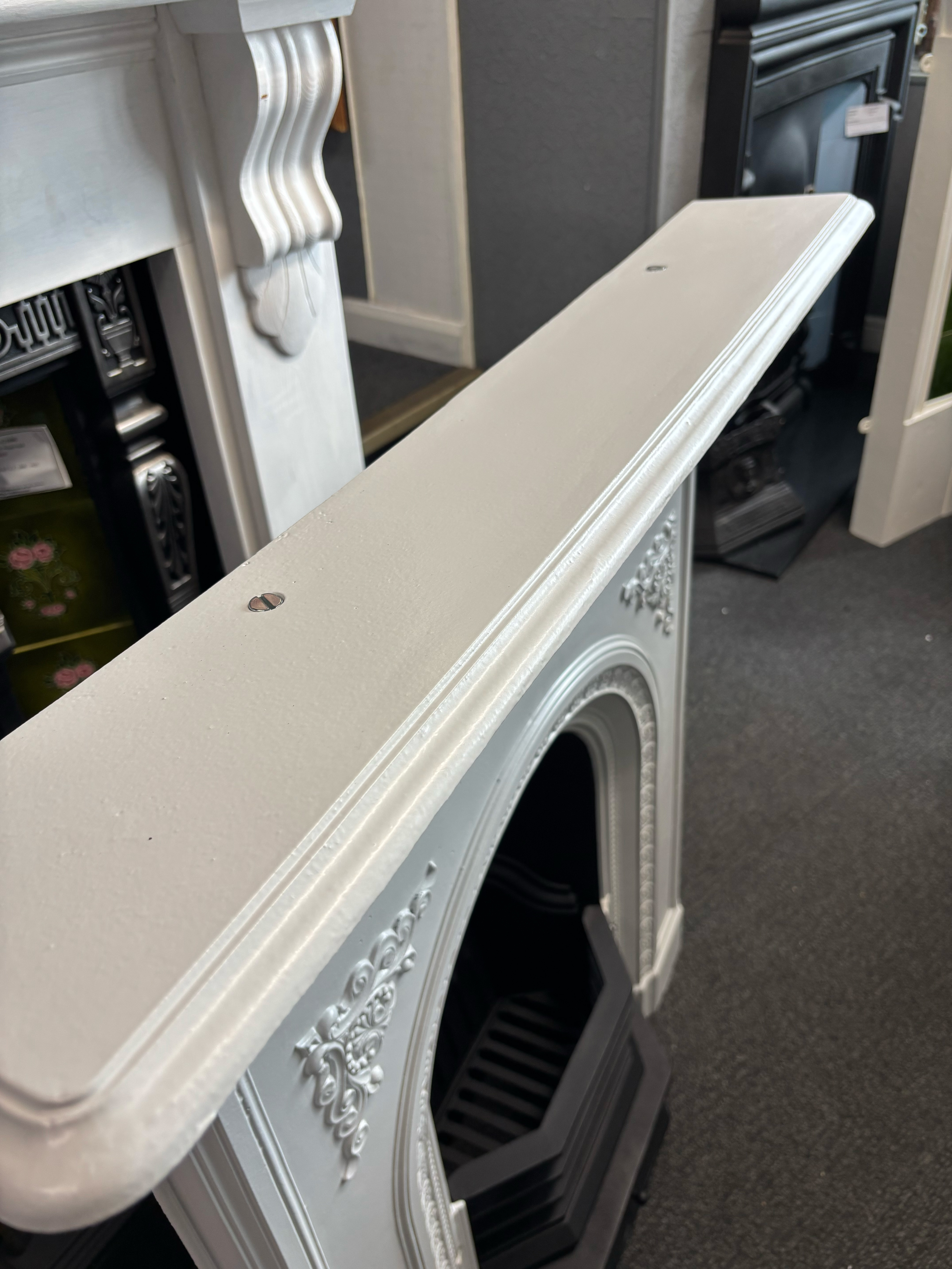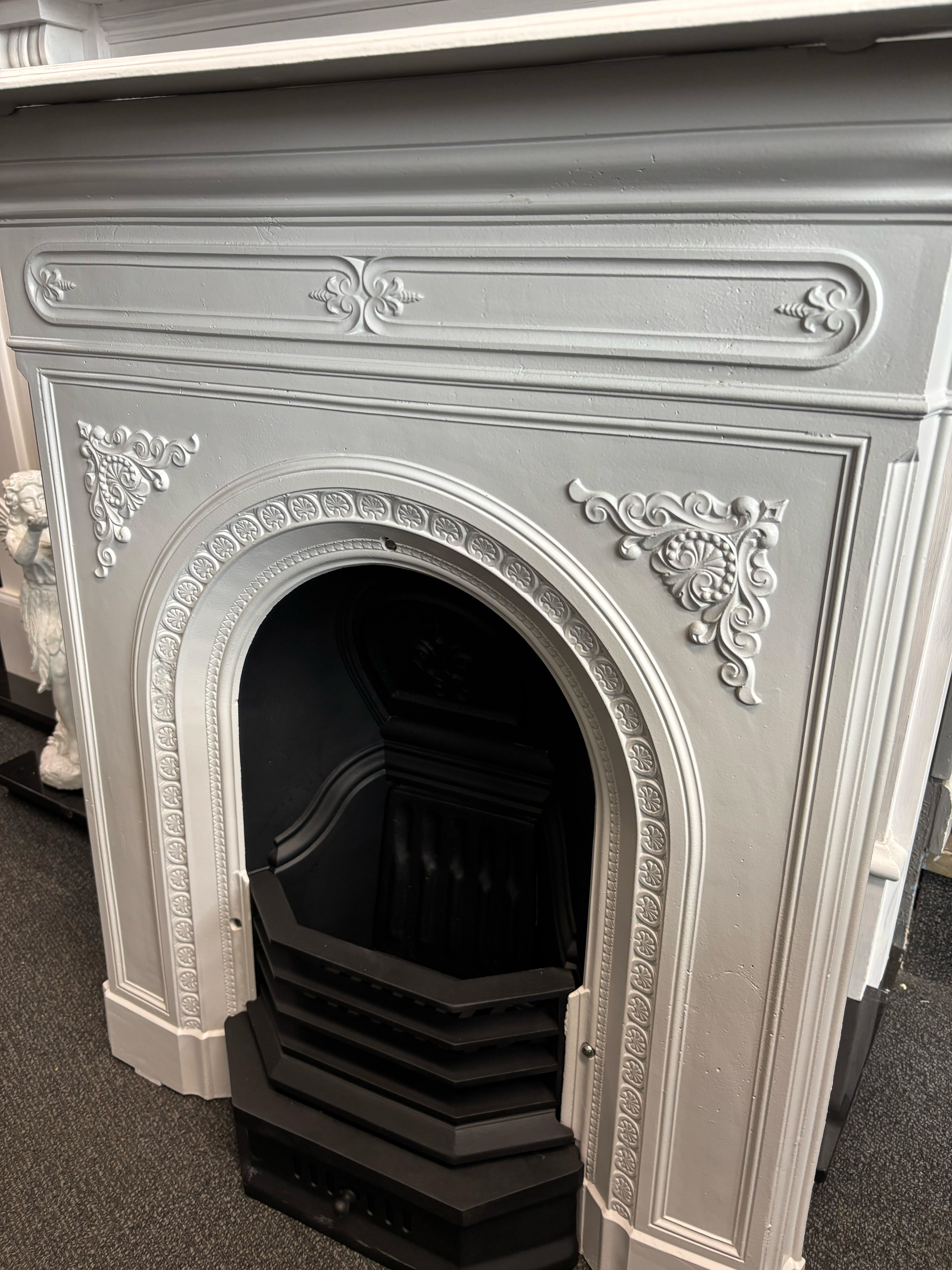 Edwardian combination fireplace powder coated in a light grey finish, circa 1895.