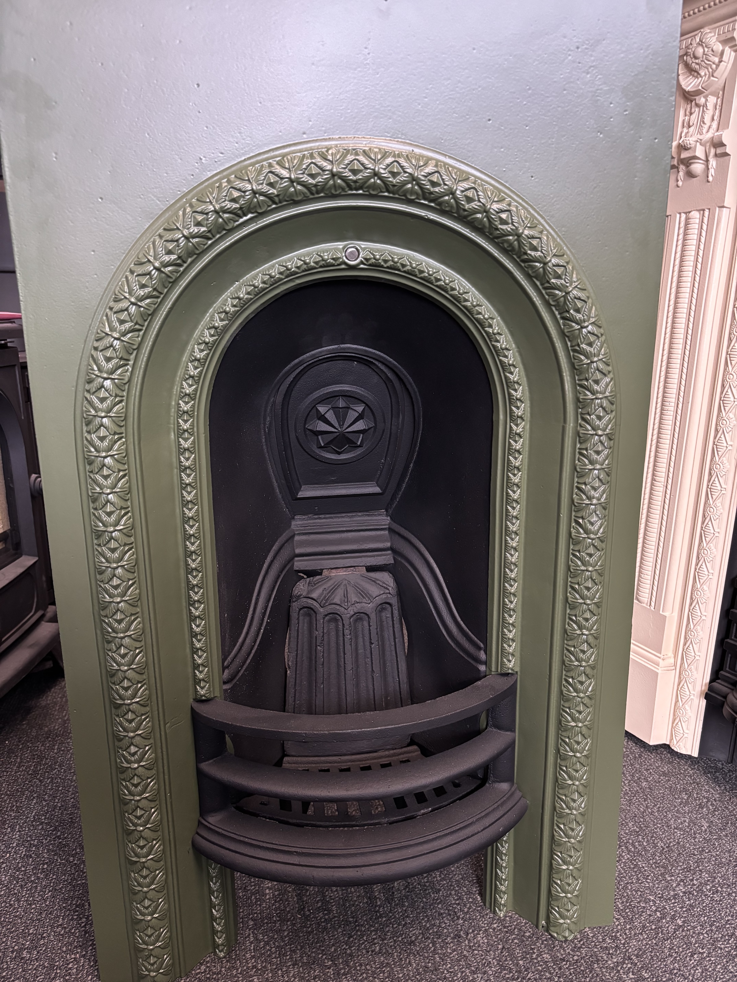 Our Victorian arched insert adds a touch of antique character to your fireplace. Inspired by designs from the Victorian era and finished in a distinctive army green, it can be paired with a fireplace surround of your choice.