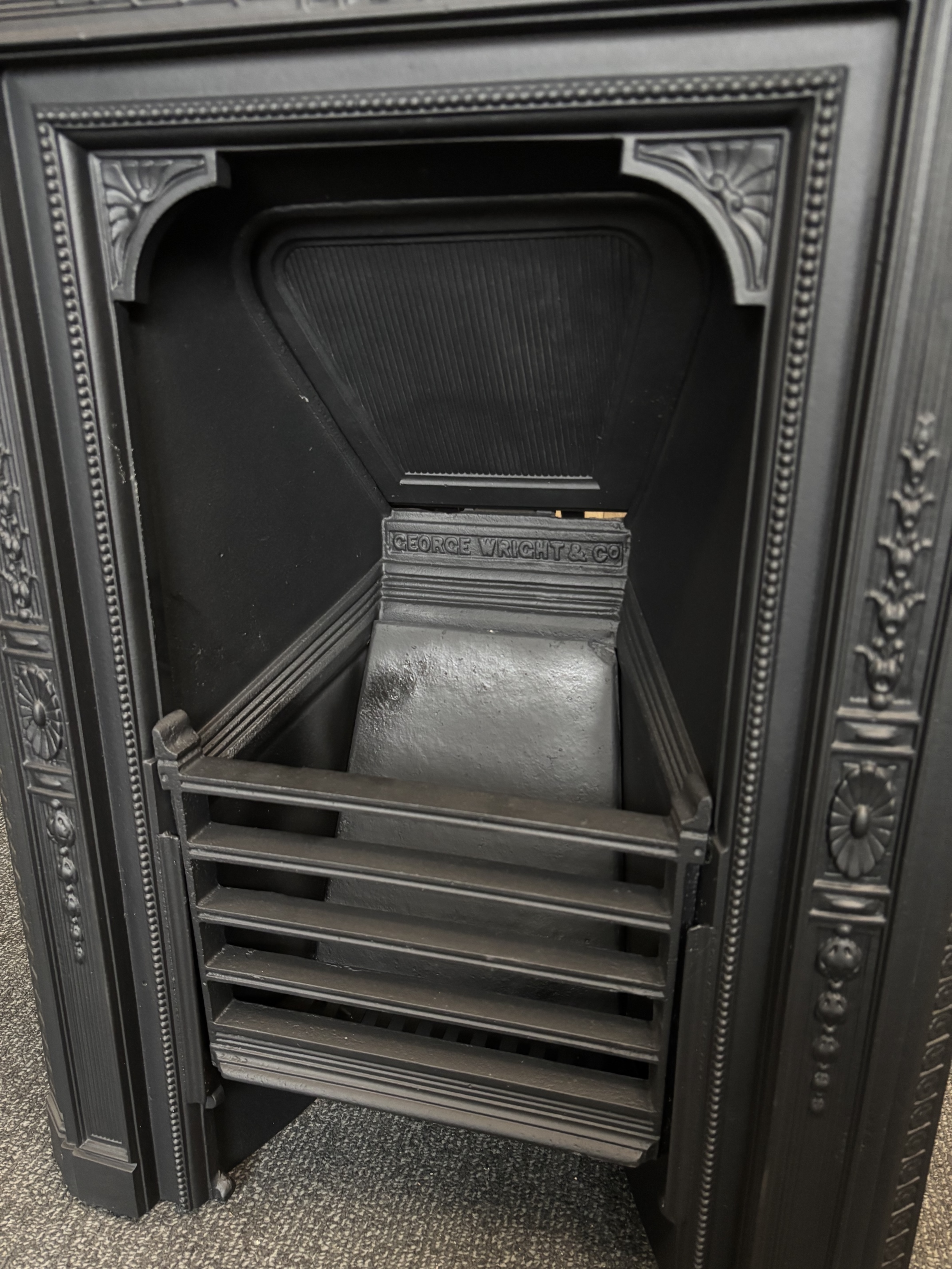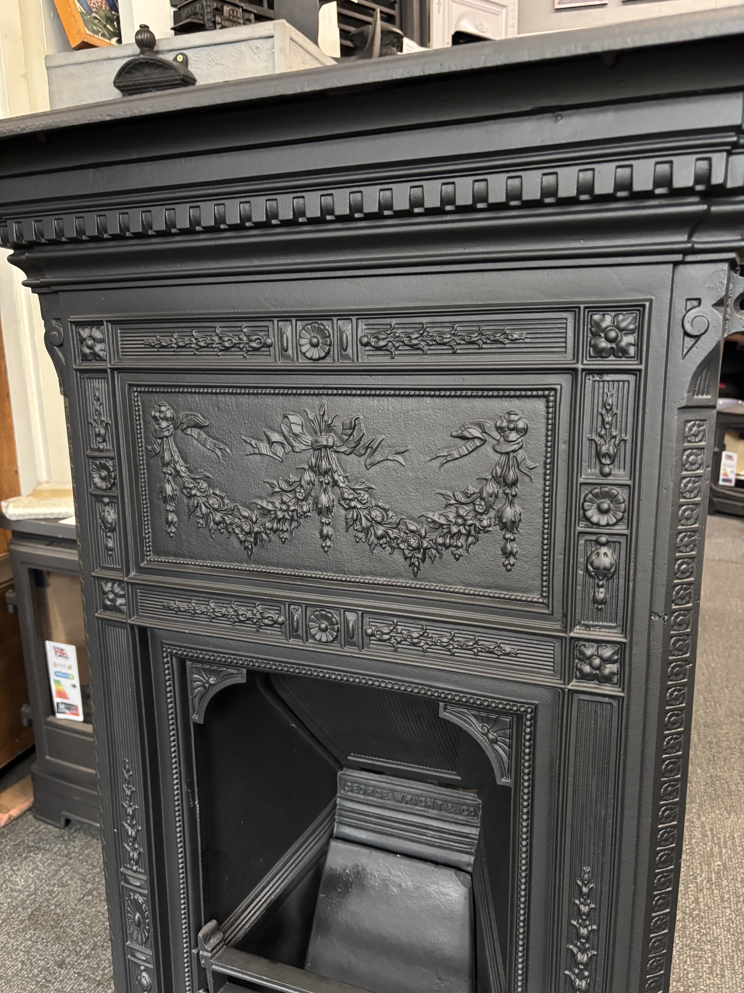 This cast iron Victorian combination fireplace features elegant floral patterns and refined period detailing. Inspired by authentic 19th-century Victorian design, this antique fireplace adds timeless character and decorative charm to any home or living space.
