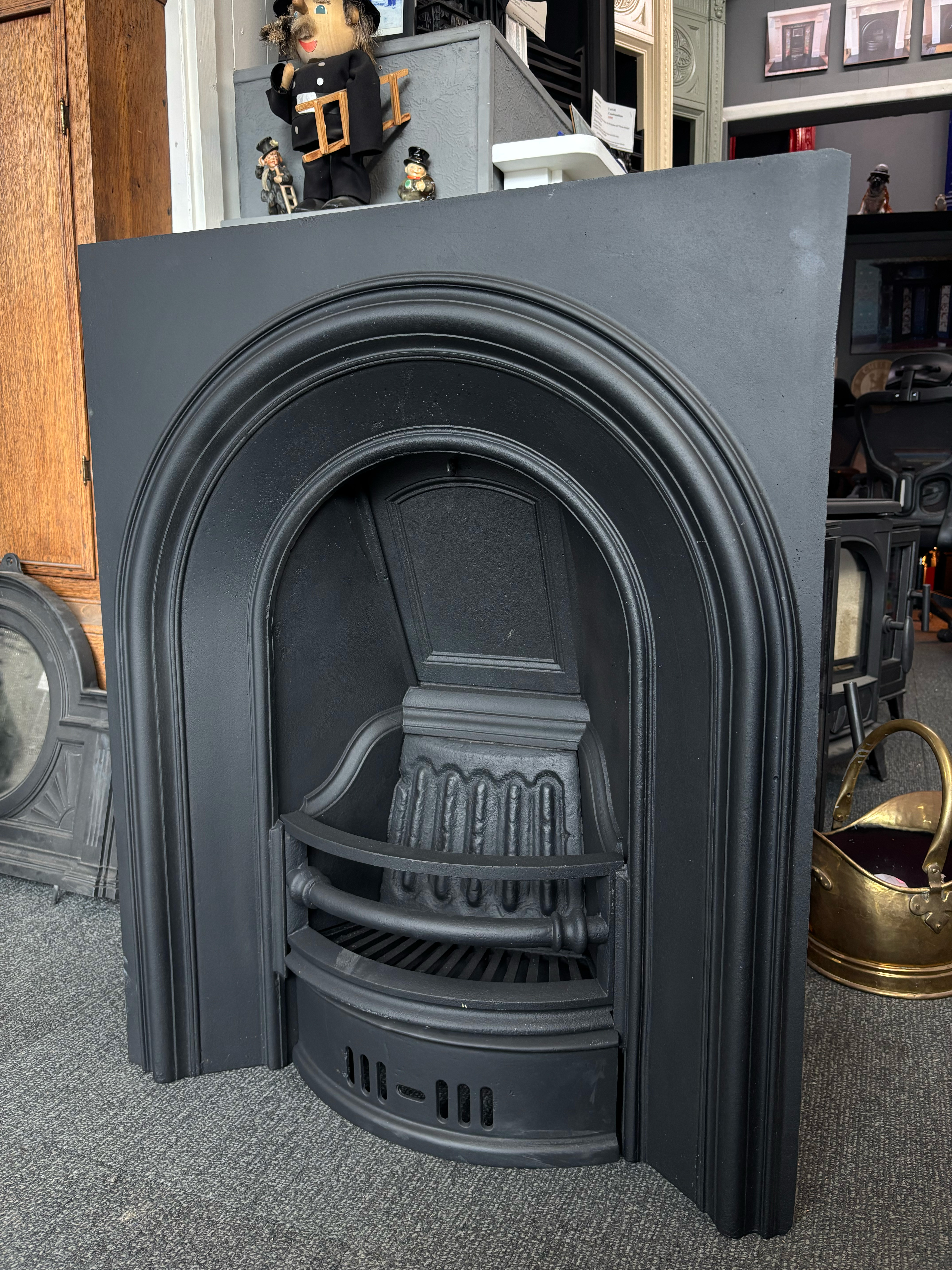 This Victorian cast iron arched insert features a bold arch design with smooth layered moulding for a clean and elegant look. The shaped damper plate and subtle yet strong front bar and vented ash pan cover complete the classic period look of this arched insert.