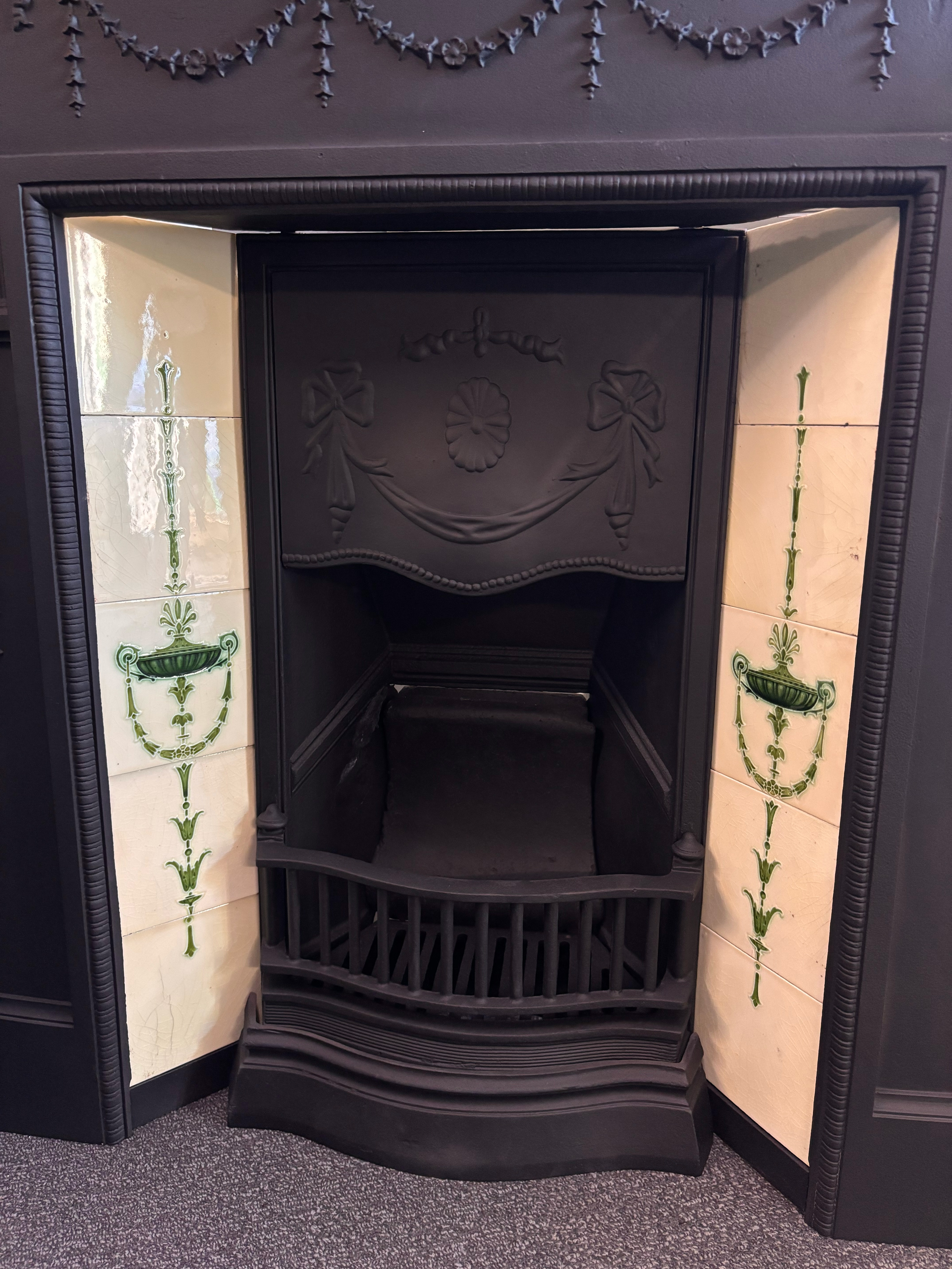 1890 late Victorian tiled register manufactured by ETNA in black.