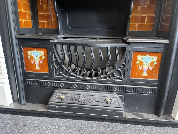 Rare Victorian tiled hob grate circa 1890. With all original parts and brass finnels. Shown with an original set of tiles.